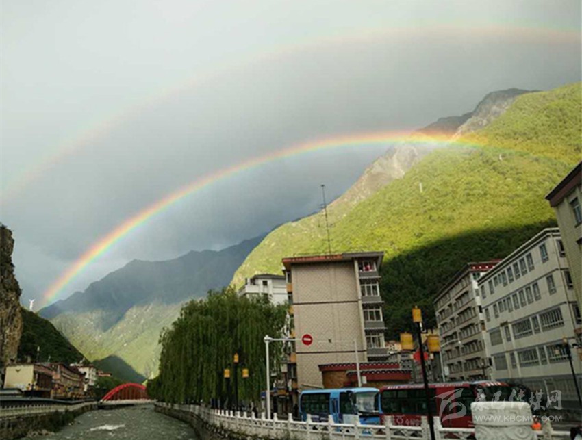 6月4日下午18時55分左右,康定東關(guān)突然出現(xiàn)兩道美麗的彩虹。過往人們紛紛駐足觀看,許多人拿出手機記錄這美麗的景色。這次出現(xiàn)的彩虹在康定很多地方都能看見,下橋、大禮堂、阿里布果都能看見。ps:啥是雙虹!虹是大氣中的一種光的色散現(xiàn)象。太陽光是由赤橙黃綠青藍(lán)紫七種不同的光線組成的,由于它們的波長不同,當(dāng)雨后太陽光射入空氣中的水滴時,水滴對不同波長的光線接受程度不同,經(jīng)過水滴表面發(fā)生曲折,然后再由水滴內(nèi)壁重復(fù)地折射出來,這樣經(jīng)過水滴的折射,分光,內(nèi)反射,再折射等,太陽光的七種顏色便被分散開,就形成了彩虹。如果太陽光經(jīng)過水滴的兩次反射,兩次折射才射出水滴,便形成了雙虹。