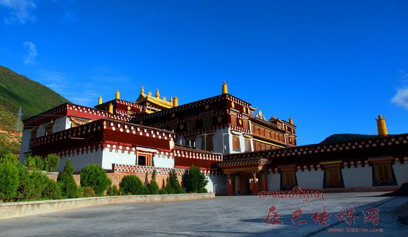 老寺廟經歷了無數滄桑變故,已是滿目瘡痍,1996年,在國家的支持下遷址重建。新寺坐落在雄偉的巴姆山腰,從這里可以俯瞰縣城全景。主殿為四層錯落式建筑,占地超過2000平方米,規模宏大,裝修精美,尤以“建筑藝術,雕塑藝術,彩繪藝術“三絕著稱”。