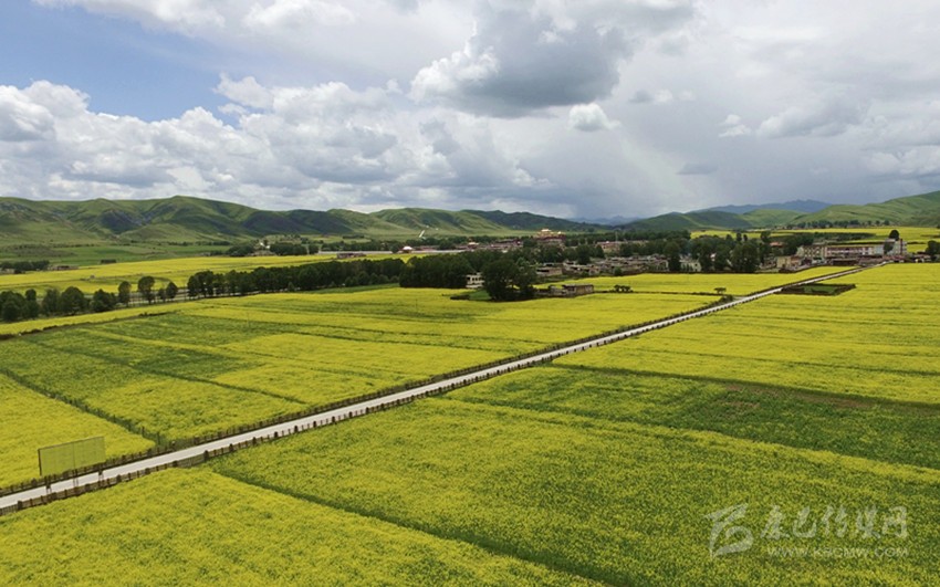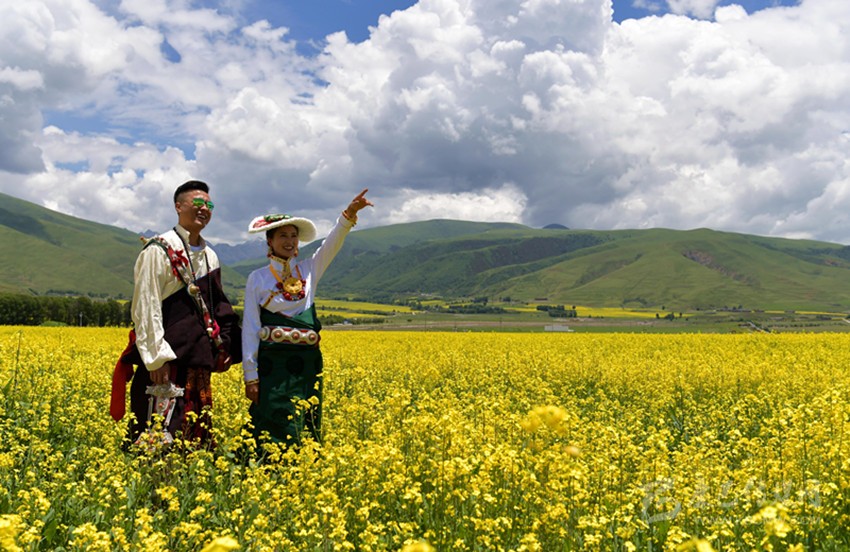 滿目金黃香百里,一方春色醉千山。道孚縣協德鄉是我省最大的春油菜基地,進入七月,是油菜的盛花期,萬畝油菜花競相綻放,形成了壯麗的金色花海,讓來自四面八方的游客沉醉其中。