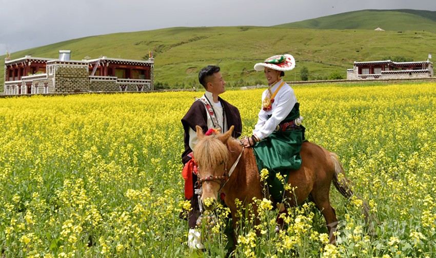 協德鄉的土登告訴記者,協德鄉有著名的惠遠寺,地勢平坦開闊,雪山草原,藍天白云,現在又有了萬畝油菜基地,風景如畫,具備發展鄉村旅游的先決條件。村里已經有不少農戶提升了住房風貌,開辦了農家樂,生意一天比一天好起來。