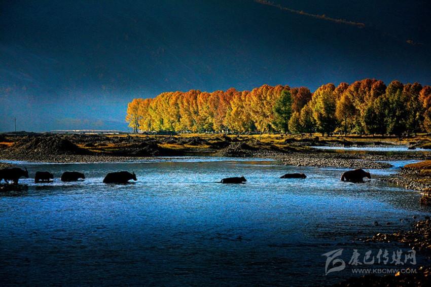 夕陽照耀湖水,閃著金銀光;綠樹撐著青天,到處莽蒼蒼;牧民家的房子,五彩斑斕樣;藍色天空之上,白云在飄蕩;青石河岸之畔,繽紛百花香……這里是寫生的圣殿,這里有攝影的天堂,這里是讓人魂牽夢縈的夢里仙鄉。