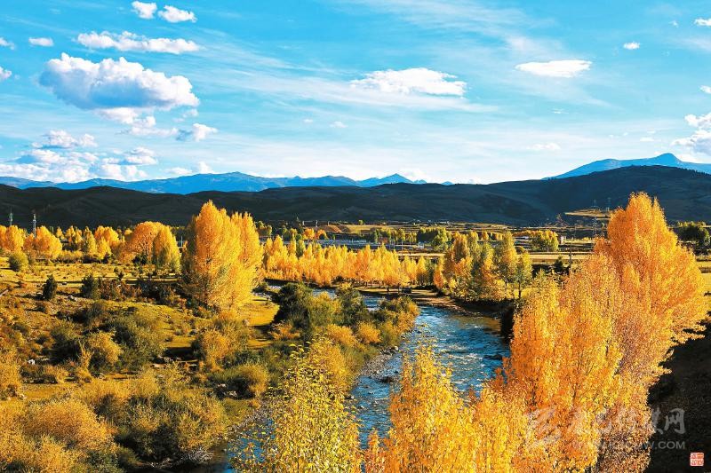 本網訊 10月7日,隨著深秋的到來,位于川西高原藏區的理塘縣甲洼鎮成片白楊樹由綠變黃,藍藍的天空、寧靜的藏寨,構成了一幅美麗鄉村畫卷。