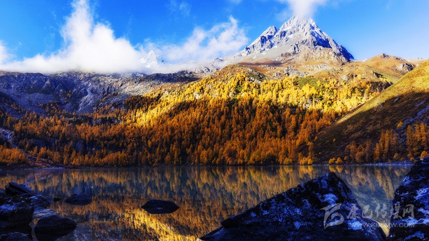 深秋季節,騎馬上山,穿過彩色秋林來到湖邊,但見雪山腳下,層巒疊嶂,落葉松間,一池秋水像一顆純凈的寶石,鑲嵌在嶙峋陡峭的高山峽谷中,偎依在茂密的原始森林旁,湖水倒映著藍天白云和金黃的落葉松,靜謐而神秘,散發著迷人的光芒。這里沒有絲毫人工打造的痕跡,這里沒有一點人間煙火的味道,這里就是一方充滿誘惑的世外桃源——道孚甲依拉措。
