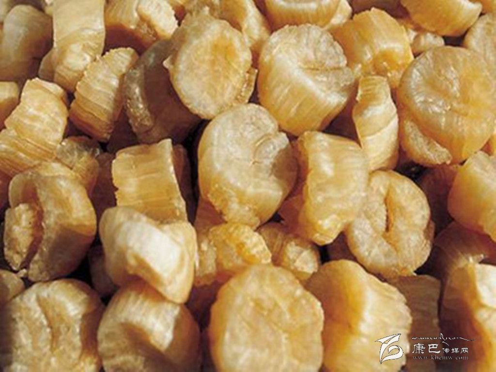 ●干貝。以色澤杏黃或淡黃、表面有白霜、顆粒整齊、肉柱較大堅(jiān)實(shí)飽滿、肉絲清晰,有特殊香氣,味鮮、夠平、淡口的為上等貨;而肉柱較小,色澤深暗或是黃黑色者質(zhì)量差。