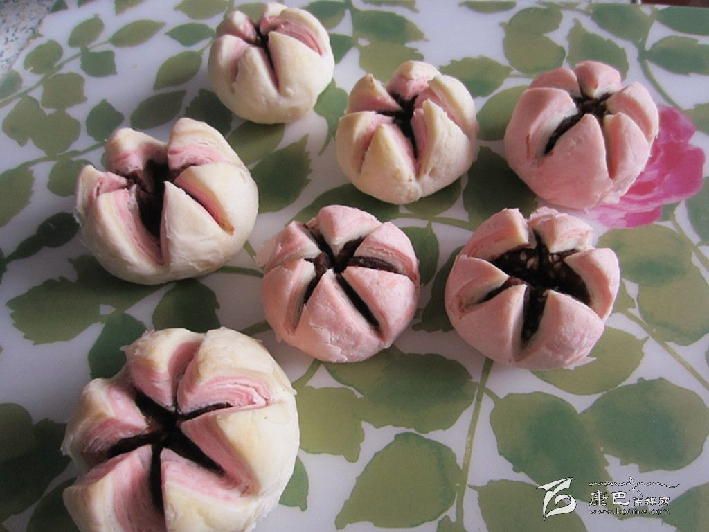 19.將做好的荷花酥放入烤盤,上下火165度烤25分鐘。