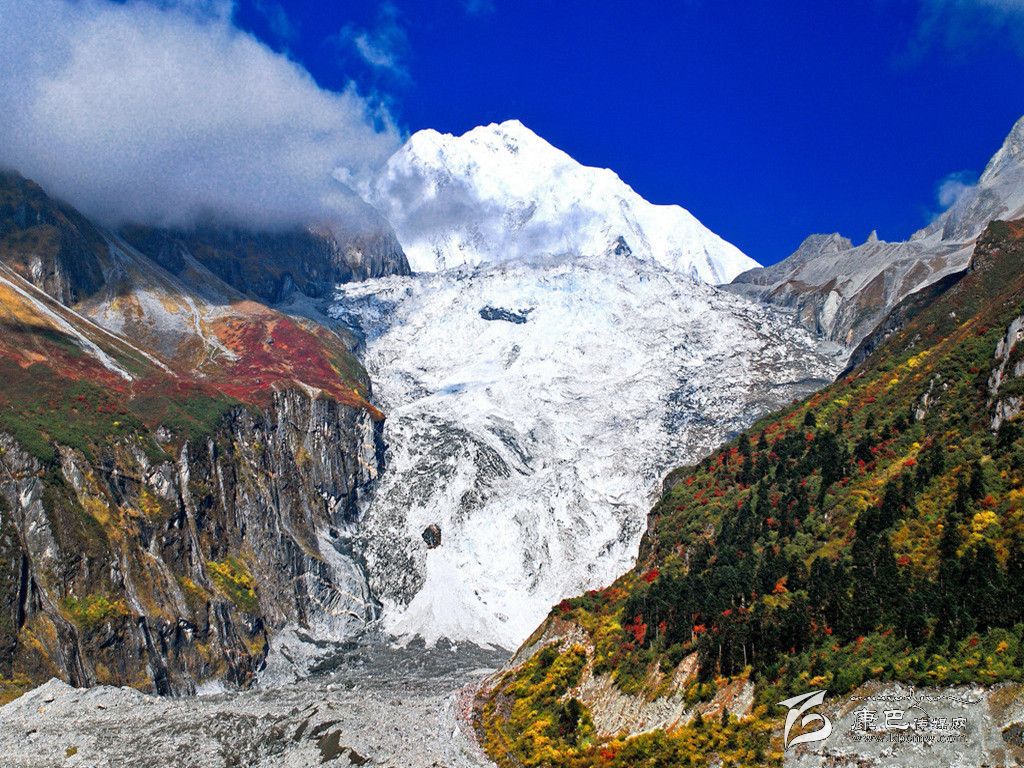 海螺溝位于四川省甘孜藏族自治州東南部,貢嘎山東坡,是青藏高原東緣的極高山地。海螺溝位于貢嘎雪峰腳下,以低海拔現代冰川著稱于世。晶瑩的現代冰川從高峻的山谷鋪瀉而下。海螺溝是亞洲最東低海拔現代冰川發現地,海拔2850米。其大冰瀑布高1080米,寬0.5米-1100米,是中國至今發現的最高大冰瀑布。溝內蘊藏有大流量沸熱溫冷礦泉,大面積原始森林和高的冰蝕山峰,大量的珍稀動植物資源,金山、銀山交相輝映,蔚為壯觀。