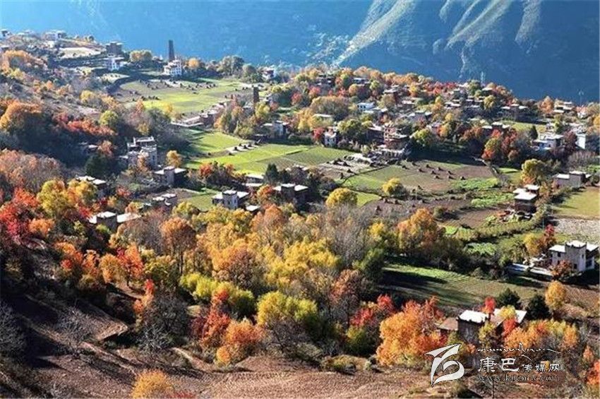 遠遠看去,充滿靈氣的山谷中,翡翠般的青草綠樹之中,是那沉甸甸的田地和隱在密林深處的寨房,伴著時有時無的潺潺溪流,一幅富有動感的絕妙山寨畫卷隨之展示在你的眼前。山寨依山面水,周圍綠樹掩映,藏寨從大金河谷層層疊疊向上攀沿,錯落有致的散布在山坡上,一直延伸到卡帕瑪群峰峰的腳下,非常的漂亮。