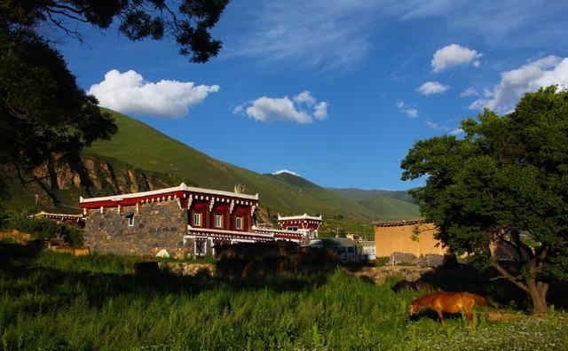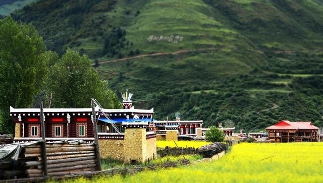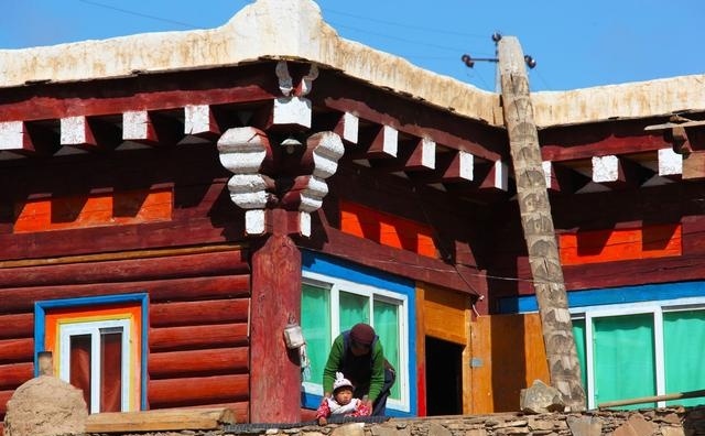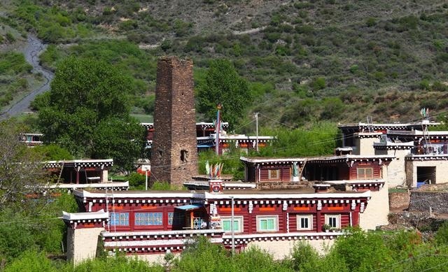 走進這座別致的高原城市,首先呈現在你面前的就是那鱗次櫛比的藏式民居。這些民居外表主要由棕白兩色構成,白色的屋頂,白色的主墻,木結構處多用棕色顏料染涂,其間配以紅色、藍色圖案,在藍天、白云、青山、綠水的輝映下,仿佛幻化成妙不可言的積木圖案。這里的民居修得美輪美奐。如果不是親眼見到,還一定會認為這令人眩目的房屋是夢境。這就是道孚民居,被譽為散落人間的仙境皇宮。