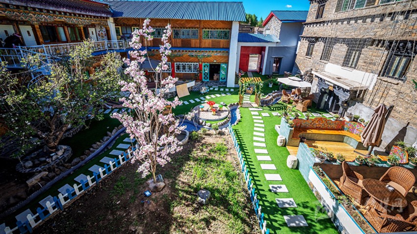 曾經(jīng)的倉庫變成了咖啡廳,關(guān)牛的地方變成了餐廳,土司房變成了溫泉套間,四合院變成了小橋流水,雖然有些改變,但留給客人的依舊是一個(gè)傳統(tǒng)藏式四合院。“唯一改變的只是多了些新人新事來來往往,在這里從你的全世界路過……”石雅琴借用張嘉佳的《從你的全世界路過》的話語,道出了她對(duì)“親愛的宅宅”的“定性”。