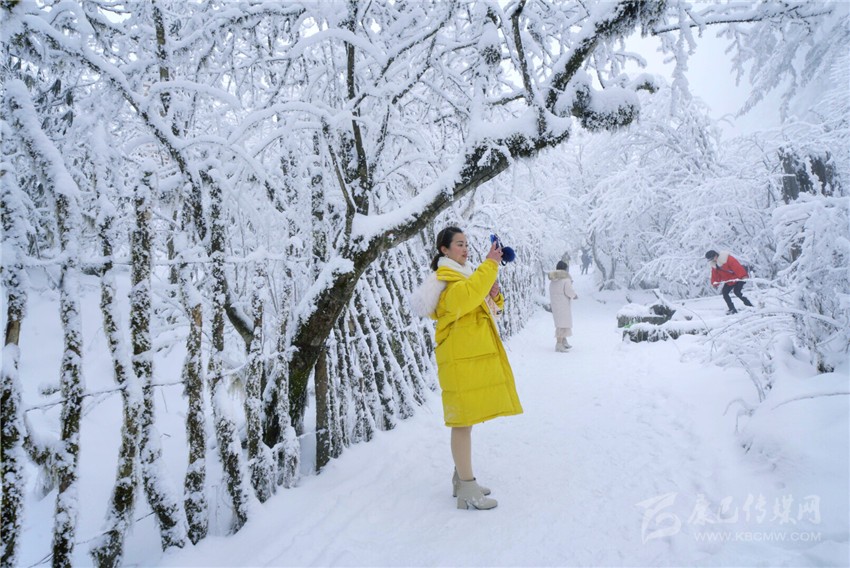 游客在海螺溝景區冰雪世界中自拍。江衛平 攝