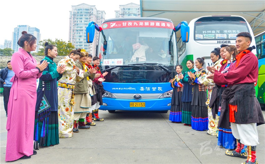 景區直通車授牌儀式和自駕游車隊授牌儀式也是本次推介會的亮點。兩項儀式旨在進一步方便廣大游客到九龍旅游,并開啟成都直通九龍旅游及運輸融合發展的歷史征程。現場,貼有“穿越藏彝走廊,體驗民俗風情”和“甘孜九龍旅游直通車”車標的汽車引得不少人注目,有的還當即向工作人員咨詢票價、路線。
