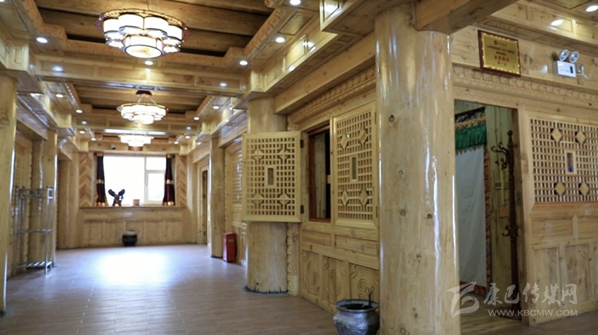 這幢民“居”之所以是“宿”,是因?yàn)樗牡讓颖辉O(shè)計(jì)建造成為了11間客房,安裝現(xiàn)代化設(shè)施后用于旅游接待。而二樓則為臥室、經(jīng)堂、客廳、貯藏室、廚房、走廊和陽(yáng)臺(tái)等,在建造中最難的一道工序便是室內(nèi)裝修的雕刻和繪畫(huà),此二門藝術(shù)可謂“崩科”之精華所在,極具康巴文化特色。