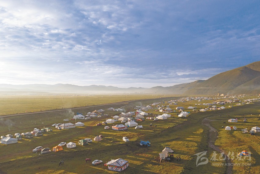 金馬草原以寬、平而著稱,藍天白云和雪山草地融為一體,明媚陽光和朵朵帳房風景如畫。傳說金馬草原腳下有一匹金馬,又傳說在這里曾發現過一塊馬頭形金塊,后人為祈禱福祉而得名,碧草連天,駿馬奔騰,千里沃野,牛羊成群。景區主要以草原風光和游牧部落風情為主,加上宗教文化的融入,使金馬草原旅游區成為集觀光、娛樂、探秘、朝拜、餐飲等于一體的景區,游客不僅可以享受淳厚濃郁的民族風情,還可以體驗獨具特色的游牧部落文化。