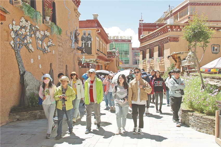 9月2日,理塘縣“勒通古鎮·千戶藏寨”景區游人如織,來自各地的游客暢游古鎮,感受濃郁的藏文化。