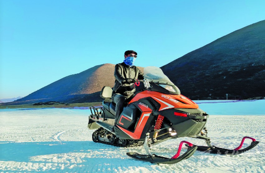 戴上墨鏡,穿好滑雪保護裝備,固定完滑雪板,手中的滑雪桿一用力,四郎達吉瀟灑的身影便“舞動”在滑雪場上。作為一名戶外運動愛好者,四郎達吉從未想象過,如今在家鄉就能體驗滑雪的樂趣。