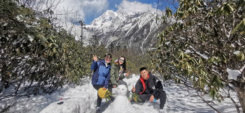 今年春節期間,我州A級旅游景區共接待游客10.96萬人次,實現門票收入319.86萬元。圖為游客在海螺溝景區盡享冬日樂趣。