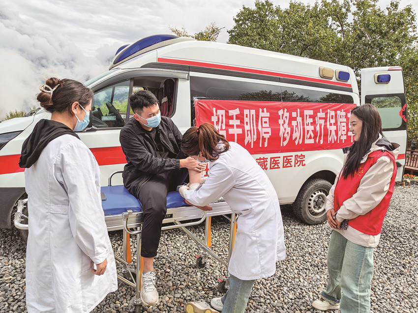 移動(dòng)醫(yī)療保障車服務(wù)隊(duì)延伸丹巴旅游醫(yī)療服務(wù)的長(zhǎng)度。