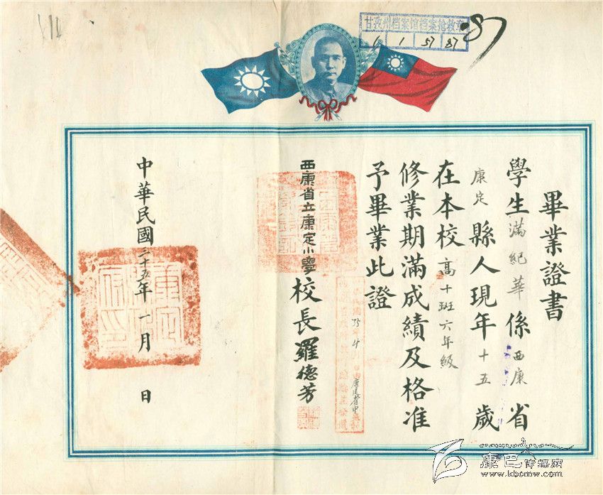 這里的幾份畢業證書,有由“國立康定師范學校”所頒發 畢業證,也有由小學校頒發的小學畢業證。通過這些畢業證,讓今天的人們也能感受到在那個時期,西康地方的學校教育十分正規,也就是那個時期畢業的許多學生,成為了新中國成立后,建設社會主義新藏區的一支重要力量。