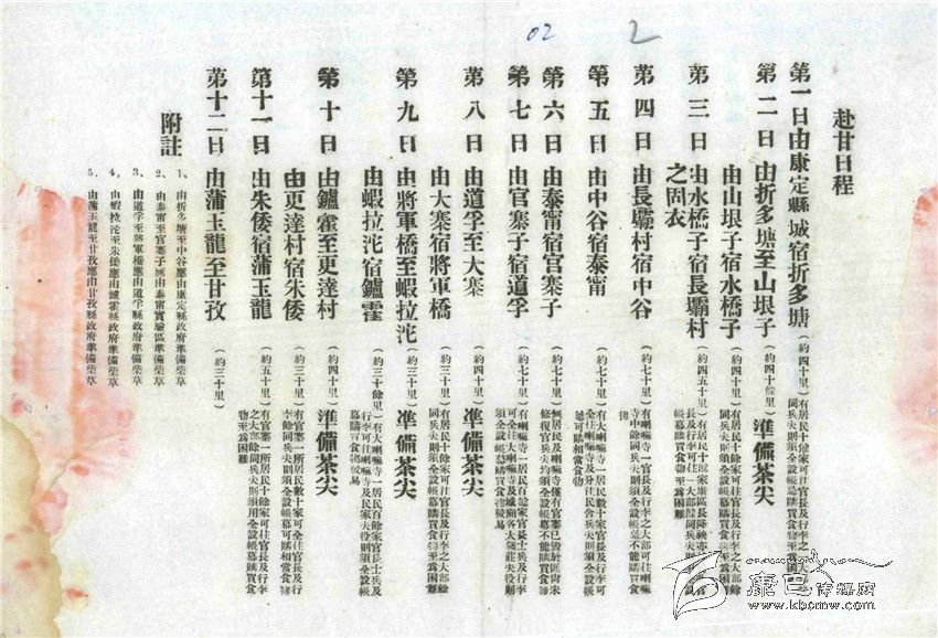 為了安排好戴院長一行的行程,西康建省委員會專門發出了一份“訓令”。這份時間表就是根據“訓令”要求為戴院長行程作出的安排。每天從何地到達何地,里程多少,休息地有無村莊、寺廟,接待力量如何、是進房屋休息還是支帳篷都有說明,而且對沿途各縣各地提出了包括應準備柴草、應在哪些地方準備“打尖茶”(午飯)等具體要求。