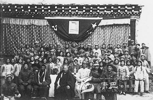 貢嘎山寺開學典禮 坐在第一排中間者為貢嘎活佛與于道泉(右)教授