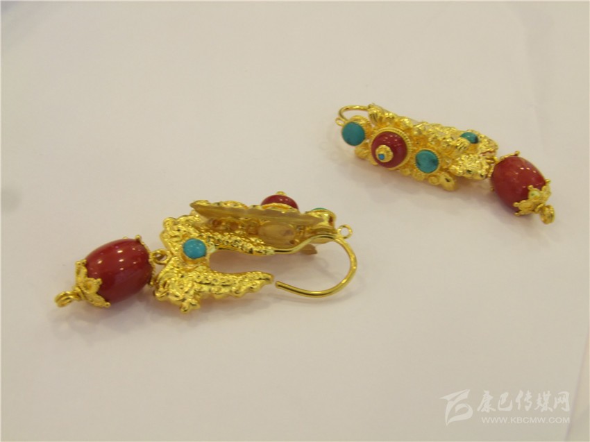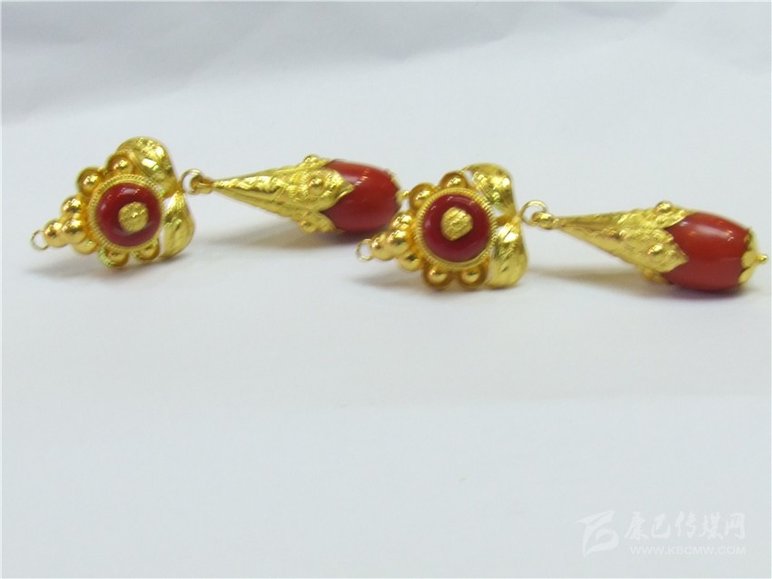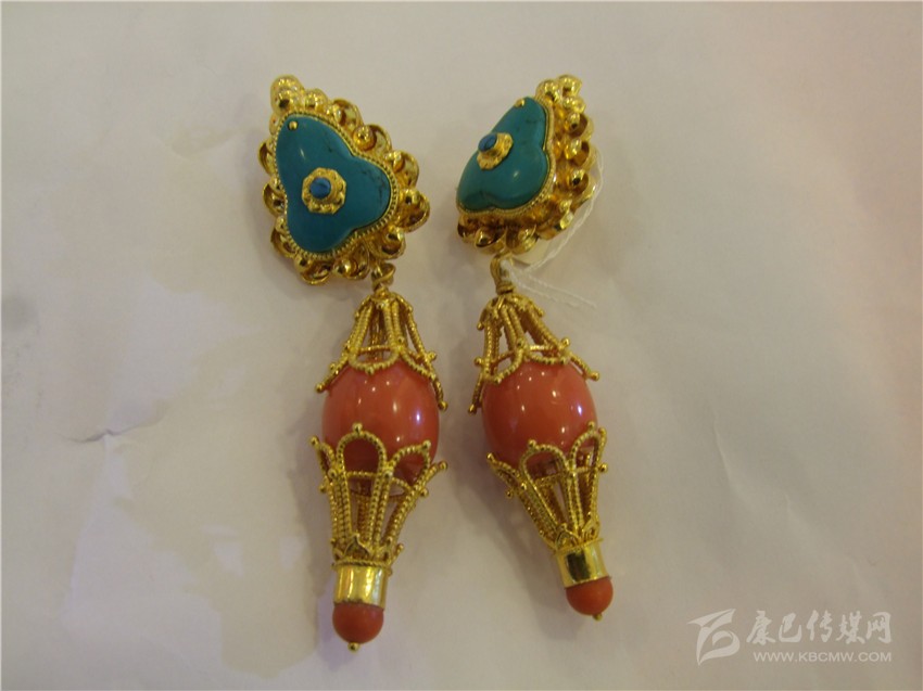 經(jīng)典的紅綠配耳環(huán)。撞色一直都是永不落伍的時尚,紅綠搭配的巧合,是藏民族熱愛生命與熱情好客的象征,用流光溢彩的金色將紅與藍(lán)包圍并連接,看起來協(xié)調(diào)而美好,搭配起來更為時尚。據(jù)店家介紹,此款耳環(huán)凈重22.75克,加上手工費,售價7000余元。