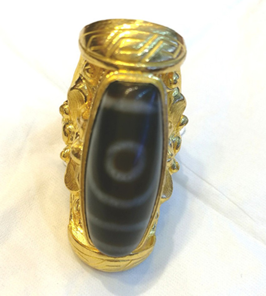 天珠,一種神秘而珍貴寶珠,不僅具有裝飾搭配的作用,更寓意著平安、好運。藏族人認(rèn)為能夠供養(yǎng)一顆老天珠既是有了福報,并相信能夠獲得意想不到的吉祥和圓滿。珍貴的天珠鑲嵌在做工精細(xì)的黃金花紋里,不僅是對時尚潮流的追隨,更是虔誠信仰的一種體現(xiàn)。