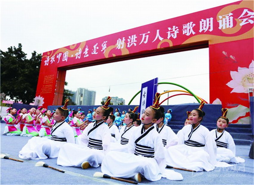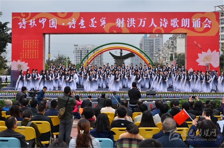 據了解,本次活動是《詩刊》2016年度陳子昂詩歌獎系列活動之一,參與人數之多、規模之大,在射洪縣尚屬首次。現場由射洪中小學生和企事業單位組成的方陣和演出隊伍,以載歌載舞或配樂詩朗誦等形式登臺表演, 內容以經典詩詞為主,也有圍繞當前中心工作而創作的新詩。這是文化的傳承,更是血脈的延續。參加詩歌朗誦會的最小的4歲,或許他們不懂文字背后的美,并不理解字里行間透露出的人生況味,但他們在射洪這樣的文學滋 養中出生、成長。