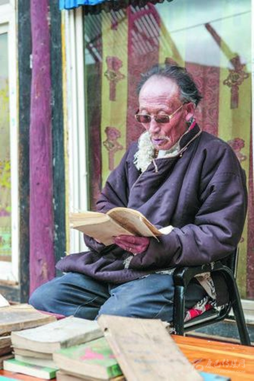 余音繞梁、鳴金收兵,天造地合的佳話叫人回味無窮。面對還沉浸在烽火邊關與兒女情長中的老人,真有一種不忍打擾的感動。幾十本從八十年代到二十一世紀由西藏、甘肅、青海、四川等民族出版社出版的各種藏文《格薩爾王傳》書籍,雖然有的邊角磨損嚴重,有的封面封底用塑料薄膜一針一線串起,卻沒有一本掉頁,更不要說有污漬灰塵了,揣摩著那一本本厚薄不一的書籍,如數家珍般逐一介紹書中的內容,就算間隔30多年都還記得買書時的場景,足見老人對它的情有獨鐘。