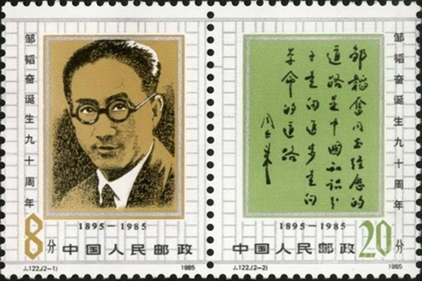 記者是一個承載著光榮與夢想的職業,又是充滿挑戰、需要激情、不怕艱辛、固守責任的行業。在我國發行的人物類郵票中,一些堪稱中國紅色記者的人物曾多次出現在方寸之中,其中,最具代表性的是1985年11月5日,原郵電部發行的J122《鄒韜奮誕生90周年》紀念郵票。該套郵票共2枚,第一枚為鄒韜奮畫像,第二枚是周恩來的題詞。兩枚郵票采用橫連票設計,背景為文稿稿紙,主題鮮明,寓意深刻。