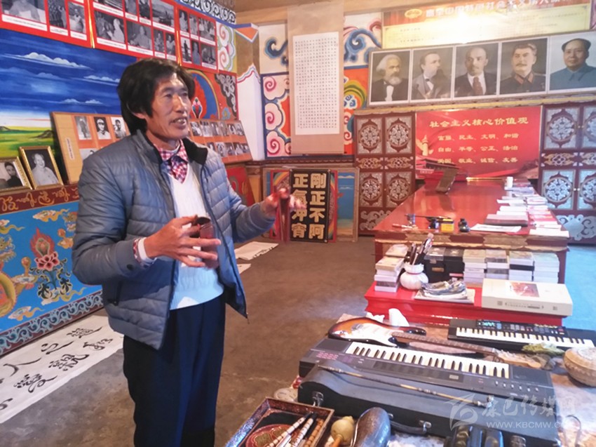 到了九龍,記者幾次打算采訪呷爾鎮(zhèn)原文化站站長(zhǎng)王長(zhǎng)生。王長(zhǎng)生,人稱王老表。65歲的王長(zhǎng)生本該退休在家安享晚年,然而,作為九龍乃至甘孜州的文化名人以及他在開(kāi)展群眾工作方面的建樹(shù),退休后,他依舊是個(gè)大忙人,黨的十九大勝利召開(kāi)后,作為省級(jí)優(yōu)秀宣講員,為了搞好宣講,他潛心備課,黨的十九大精神宣講全面鋪開(kāi)后,他與宣講團(tuán)成員一道奔赴瀘定、丹巴、雅江、九龍等縣農(nóng)牧區(qū)宣講。12月12日,他忙里偷閑,在美觀整潔的家里接受了記者的采訪,多才多藝的王長(zhǎng)生向記者展示了他高超的才藝。