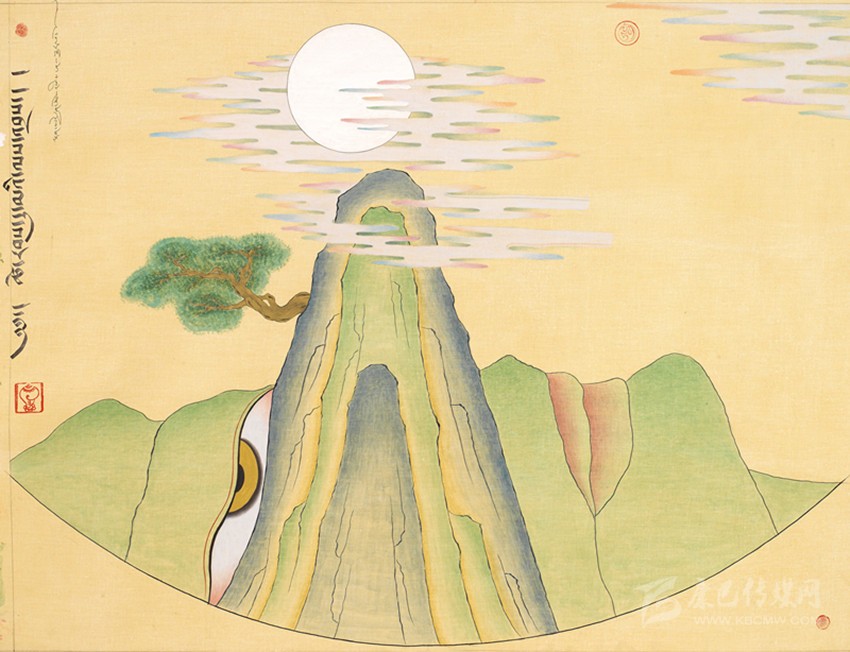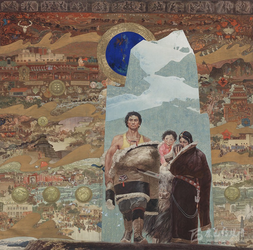 15世紀以來,唐卡發展所恒定的兩個元素:一是平面構圖的神佛之境,另一則是吸收大青綠山水精髓。正如DNA鏈的雙螺旋結構一般,使唐卡繪畫在歷史時空中穿插縈繞,在雪域各地生根開花。到了公元20世紀初,照片的高度寫實促使藏地畫家邁出了革新步伐,使得唐卡繪畫逐漸擺脫傳統束縛,開啟了“人”的覺醒。衛藏地區出現了“根敦群培、安多強巴”引入寫實主義的嘗試,成為當今西藏“布面重彩”的先驅。新中國成立后,內地的美術創作積極影響了三大藏區的繪畫發展,上世紀80年代,四川康區“甘孜藏畫”肇起,在《嶺·格薩爾王》人文主義的召喚下,《雪山兒女》《唐東杰布》《新概念唐卡》正從歷史深處一路走來。而近年來,安多藏區則創新出了“藏族祥巴版畫”,祥巴版畫不僅是從材料技法上對西藏繪畫的豐富,更是藏地畫家們在自覺不自覺的求新、求變;甚至在傳統唐卡領域,民間畫師也都在紛紛嘗試將傳統唐卡和現代審美相結合。這一切,正是唐卡繪畫從傳統走向現代、由宗教博衍至生活的演變過程,在這個過程里,藏地畫家不僅在畫面的形式和語言上完成了傳統與當代的統一,還將西藏的審美特質虹化為作品的精神內核。這也是唐卡藝術第二次“從香巴拉到人間”的過程,成為民族文化發展的新坐標。