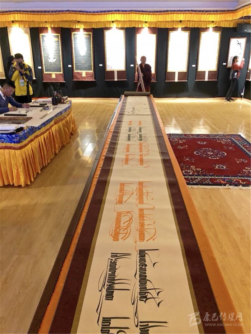 站在“倉央嘉措詩歌藏文書法百米長卷”面前,來自成都的徐賢前感嘆到:“我一直都很喜歡倉央嘉措的詩歌,但從來沒有想過可以通過書畫的形式來展現倉央嘉措詩歌,雖然我看不懂藏文,但是依然感到震撼,這次我真是不虛此行啊!”據了解,在詩歌節期間,理塘縣電子商務孵化中心書畫文化廳內展出由縣級非遺卓擦書法傳承人、縣級非遺噶瑪嘎孜派唐卡傳承人、縣書法協會成員等集合而成的近60幅藏漢書畫作品。其中,首次對外展出的“倉央嘉措詩歌藏文書法百米長卷”引來了眾多參觀者的圍觀。