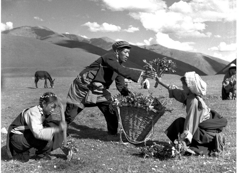 色達縣達則公社的獸醫正在采集擦藥。(拍攝于1976年5月)