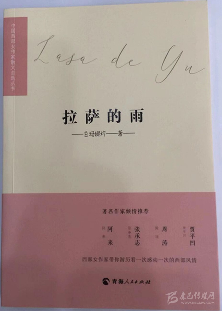 藏族作家白瑪娜珍散文集《拉薩的雨》近日由青海人民出版社出版。該書是青海人民出版社策劃出版的“中國西部女作家散文自選叢書”之一,由西部六省區的六位女性作家組成,每個省區各一位,分別是西藏的白瑪娜珍、陜西的杜文娟、新疆的李穎超、甘肅的習習、寧夏的阿舍、青海的唐涓。《拉薩的雨》選編了白瑪娜珍近年創作的散文單篇,文彩飛揚,飽含對西藏的摯愛,敘述了藏地變遷中一個個真實感人的故事。著名作家張承志、賈平凹、周濤、阿來傾情推薦,對六位作家的作品給予了充分肯定。“行文或激情飛揚,或娓娓道來,或追古撫今,文筆深刻細膩,具有濃郁的西部風情,展示了作者對高天厚土的所思所想,情懷與擔當,描述了西部地區多民族的種種生存景觀,透過他們的生活方式,感悟出特定人文環境下的文化精神和高潔的人性光輝。”