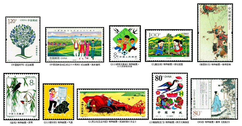 燕子是春天的使者,郵票中出現燕子象征春天。1978年6月1日發行的《從小鍛煉為革命》特種郵票第二枚“小小足球傳友誼”,圖案是小朋友在綠茵茵的草地上踢足球,空中飛翔幾只燕子,表明小朋友鍛煉身體的季節是春天;1996年6月1日發行的《兒童生活》特種郵票第四枚“綠化家園”,圖案中有兩位小朋友正在栽樹,畫面上飛翔兩只燕子,象征春天是植樹的季節;2017年3月20日發行的《春夏秋冬》特種郵票第一枚“春燕剪柳”,圖案中放風箏的兒童身旁有低空飛旋的兩只燕子,畫面中的燕子代表春天。