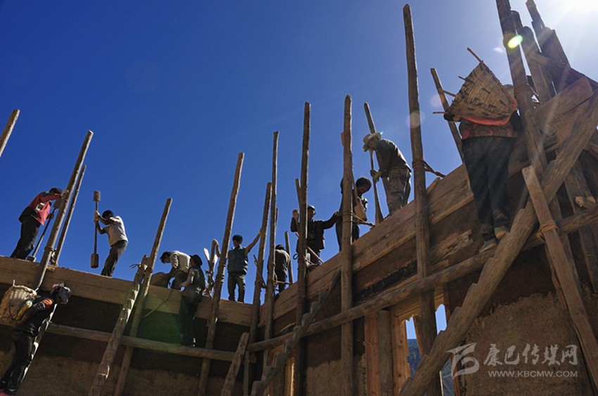 鄉城白色藏房是一種通過版筑營造工藝修建的夯土建筑。“墼(ji)”是中國古代的一個量詞,指一種借助木框夯實土坯的單位,一框為一墼。也指一種古老的生土建筑營造工藝。戰國《孟子》:“舜發于畎畝之中,傅說舉于版筑之間”。相傳傅說是商王武丁時期出身于夯土版筑工匠的賢臣。也就是說除了“墼”早在商代中國就已經出現了版筑工藝的夯土技術。鄉城白色藏房正是這種版筑夯土建筑工藝的代表之一。夯土這種古老的建筑工藝,在現代伴隨著工業文明的發展,已經逐漸淡出了主流建筑營造的范疇。但其在生態和文化方面的價值仍值得我們去關注。正是在夯土建筑工藝在世界走向沒落和消亡之時,在橫斷山脈的深處,中國西南部的四川省鄉城縣的谷地中,卻因為夯土建筑具有就地取材、施工簡易、冬暖夏涼、造價相對低廉等特點,以鄉城白色藏房為代表的夯土建筑營造工藝得以完整保留,且工藝技術還有了進一步的提高。是這種建筑營造工藝在中國規模最大的遺存。