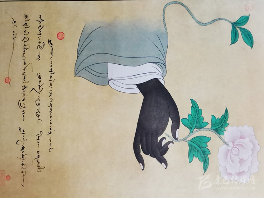 按照耷·瓊培所說,本文開頭提到的那副唐卡畫也有著特殊的意義。據了解,該幅唐卡畫名為《紅黑白》,整幅畫旨在表達無所謂手腕的黑白,艷麗與秀雅,完美與尊崇,源自手心的花莖就會被潔凈的細流滋養,最終盛開蓮花簇簇。