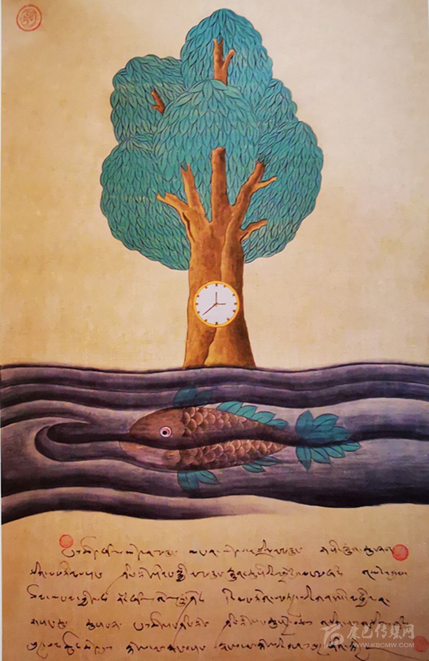 耷·瓊培談及此,深以為然。他說,他從藏地走出去但未曾出走過,在這片神奇高原上,山是神山、水是圣湖,在神山圣湖之間就是同胞幸福的居所。畫新概念唐卡于他而言,是內心生活、也是個人表達。所以,他一直汲汲營營,希求新概念唐卡成為打開受眾內心的“開放的作品”。