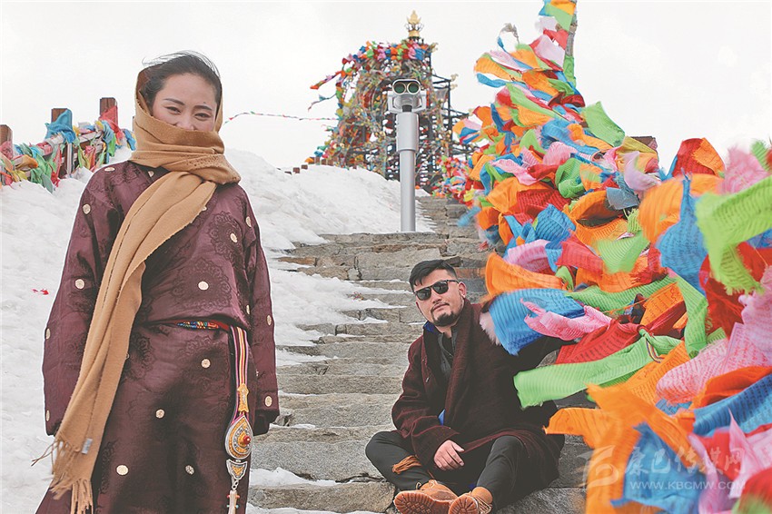 4月1日,攝制組一行來到外景拍攝地-康定市區(qū)的南無寺和318國道折多山頂。就“進寺廟為什么要脫鞋”“藏族人為什么要撒隆達”等6個拍攝方案進行現(xiàn)場拍攝。拍攝期間,從選景到構圖,從服裝道具化妝到臺詞動作表情,從曝光度到快門速度,每一個細節(jié),攝制演職人員反復琢磨和演練,力爭達到最佳拍攝效果。經(jīng)過連續(xù)三天的拍攝,16集短視頻策劃順利完成。