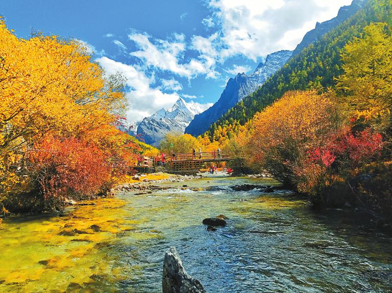 金沙江與G318線的交匯是在巴塘縣的竹巴龍,在這里一道長虹般的大橋橫跨金沙江,連接川藏,G318線跨越大橋就進(jìn)入西藏。至今還清楚地記得,第一次邂逅金沙江大橋的情景。那是跟隨一位我特別敬重的老領(lǐng)導(dǎo)到巴塘縣開展農(nóng)業(yè)工作,激越奔泄的滔滔江水,連接?xùn)|西的宏偉大橋,還有驕陽如火的村寨和熱情淳樸的父老鄉(xiāng)親……在我心里留下了深刻的印象,這就是G318線川藏的連接點(diǎn)。