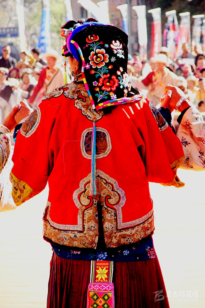 這些服飾雖歷經(jīng)歲月的滄桑,依然被完整的保存下來。如今,在上下宅龍村寨里,保存完整的有五十余套。每一年,村寨里舉辦活動時,村寨里的婦女們從木箱里取出這些服飾,小心翼翼地穿在身上,載歌載舞。在她們舞動的時候,仿佛被這些服飾帶入幾百年前的時光里,時空在這一瞬間已完全改變。這時候,服飾上艷麗的圖案將舞者們襯托得更加美麗動人,無怪乎《章谷屯志略》中有“逢慶典時著蟒衣文繡亦頗美觀”這樣的記載。
