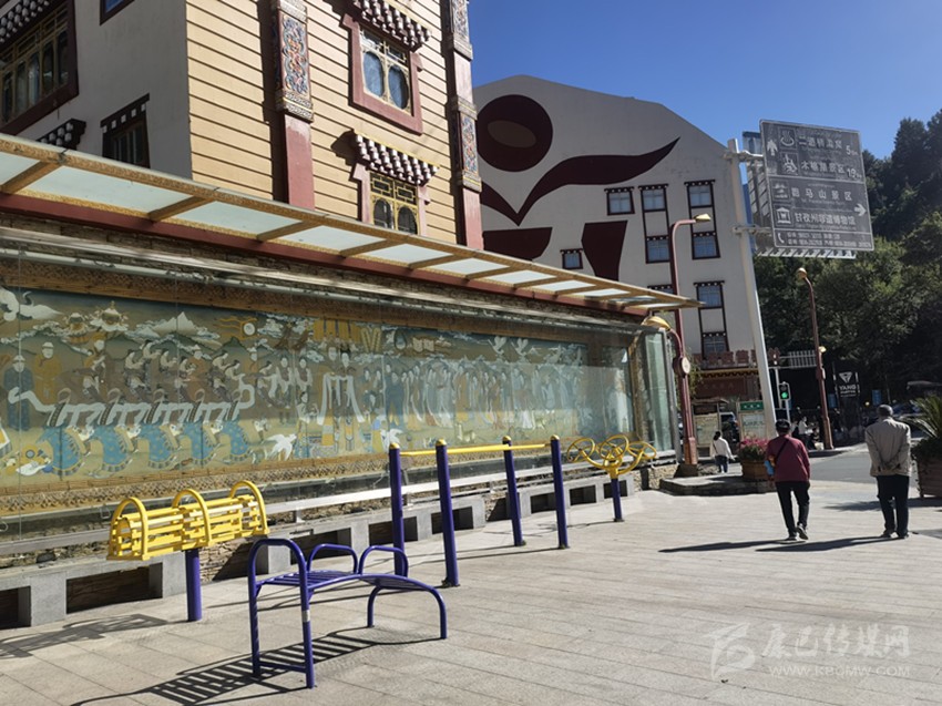 喝完酒,吃完菜,似乎余味未足,還想來點什么?來支煙,煙是活氣草,吸完再去找。別,別呀,護林防火,人人有責,為避免森林火患,山上是不允許抽煙的,請自覺遵守規章制度。好吧,不抽就不抽,走,上路。往前走,是一段平路,走完平路,就是一段上坡路,上坡路走完,又是一段平路,路邊有三個座椅,供人歇息,路邊還有兩堆壓著經文和瑪尼石的瑪尼堆,堆上有哈達。兩堆瑪尼堆中間,是由藏、漢、英文字書寫,雕刻師傅雕刻,用紅、黃、綠、藍四種顏色標出的,很顯眼的,阿里布果轉山步游道標志牌,標志牌左邊是阿里布果轉山步游道導游圖,標志牌頂上同樣掛著哈達。從標志牌拾級而下,不久就到了阿里布果轉山步游道的北邊——市氣象站附近的涼亭,從涼亭沿建設路而下,就到了康定北三巷西大街康定門,康定北面的步游道就轉完。