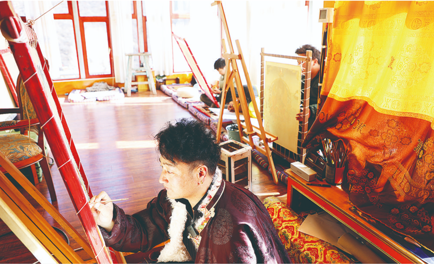 澤仁鄧珠就是其中一員,他對其麥老師有著很深的感情,“我到這邊來學繪畫已經有四年了,尤其是繪畫技法和色彩調和方面,老師給我們講得特別細致,如果沒有其麥老師對我的幫助,我也不會取得現在的成績,今后我會加倍努力,更好地掌握門薩唐卡技藝,身體力行宣傳、推介唐卡藝術。”