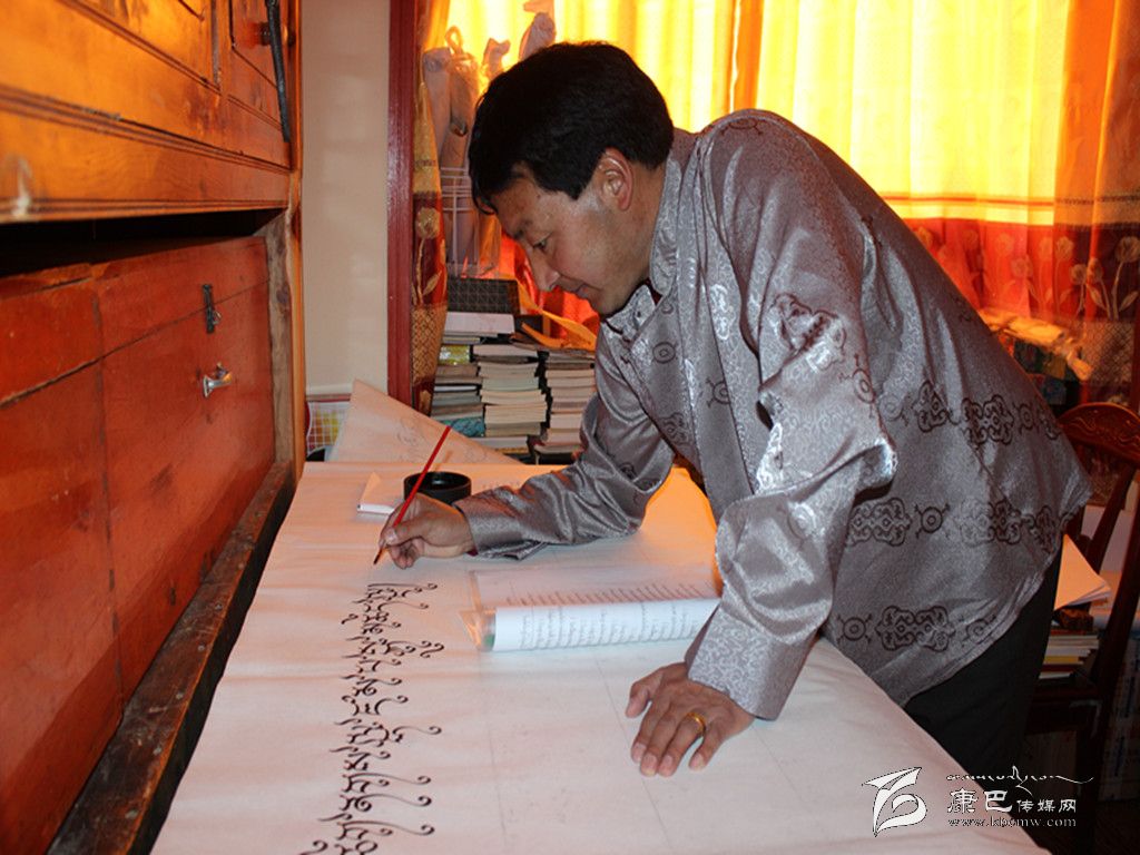 他就是巴松鄧珠,甘孜縣民族中學(xué)高級(jí)教師,從事藏文和藏文書法教學(xué)。現(xiàn)為州老年書法家協(xié)會(huì)會(huì)員、州書法家協(xié)會(huì)會(huì)員和州藏文書法協(xié)會(huì)會(huì)員。