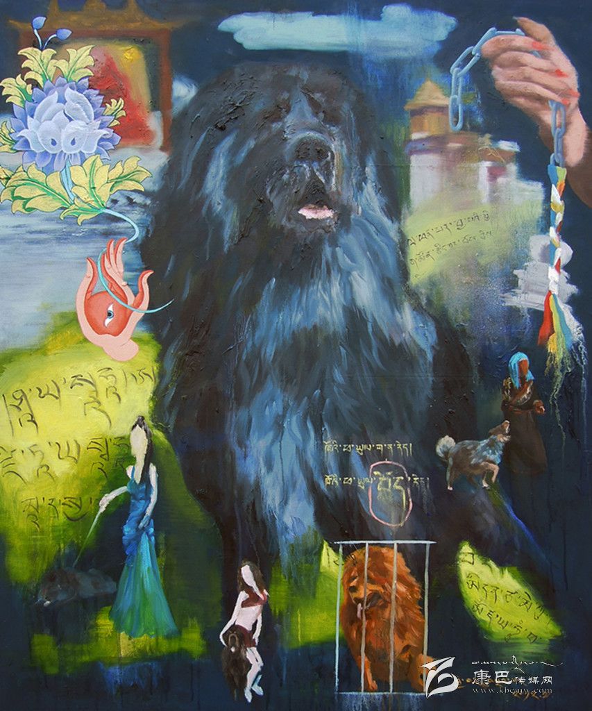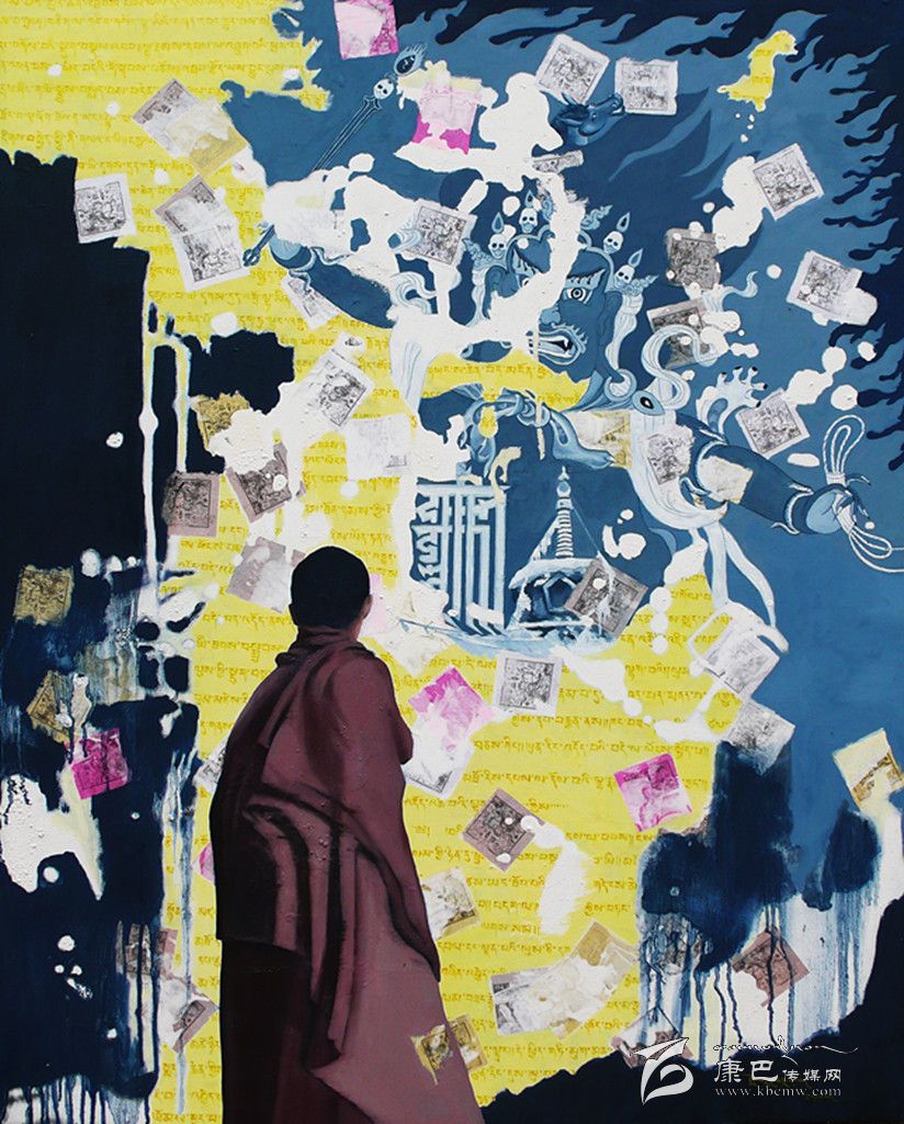 采用藏區題材做藝術的藝術家不在少數,強調寫實、原汁原味是大部分藝術家的選擇,但生于康定的藝術家周韜卻有另一番更深入的認識。與美國印第安藝術家Brad kahlhamer一樣,他用更加強烈動態的視覺制造了一個魔幻世界,讓眾人熟悉的藏區元素在畫面上集中而豐富地跳躍起來,比如喇嘛、活佛、長辮子的藏族女人,甚至形狀怪異的骷髏!