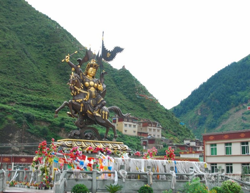 新龍是格薩爾走過的地方,當(dāng)?shù)厝藶榱思o(jì)念英雄格薩爾王,便修建了氣勢(shì)雄偉的格薩爾廣場(chǎng)。該廣場(chǎng)占地面積3705平方米,格薩爾青銅像高13米。據(jù)說,格薩爾青銅雕像的尺寸是嚴(yán)格按照著名藏學(xué)家、文學(xué)家、高僧居米·旁對(duì)格薩爾的研究所得出的結(jié)論。雕像四周格薩爾的30員大將威風(fēng)凜凜,栩栩如生,使格薩爾廣場(chǎng)威嚴(yán)肅穆。新龍縣農(nóng)牧區(qū)文化、生活變遷盡在浮雕中得到一一展現(xiàn),瞻仰格薩爾廣場(chǎng),一股濃厚的梁茹文化氣息撲面而來。