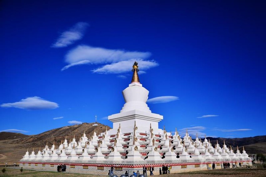這種尚白的文化心態(tài)在藏地處處可見:屋頂四角及門楣砌白石、要道山口的嘛呢堆上放白石、祭祀山神和箭桿山系上一束雪白的羊毛、供神煨桑時(shí)撒上糌粑,等等。每逢佳節(jié),藏族人們都要將家里的糌粑口袋、酥油桶、酒皿、房頂、要道、山頂?shù)认瞪习籽蛎员砥砀l鼮?zāi)的愿望,也用白羊毛來表示純潔與忠誠。(據(jù)《甘孜史話》)
