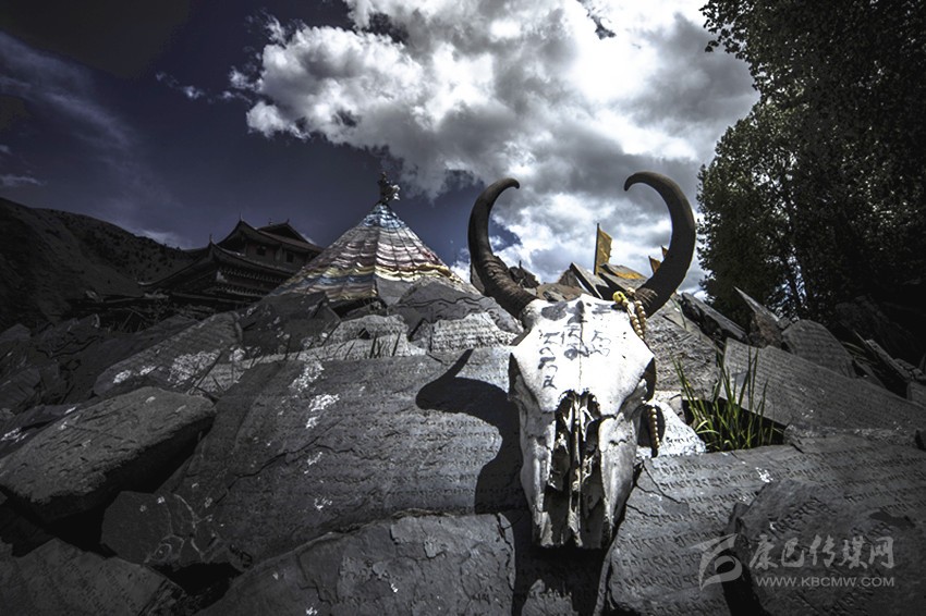 牦牛作為神圣的寶物,在藏區許多圣山、圣湖也賦予牦牛一種神性。西藏著名雅拉香布圣山、崗底斯神山、康區的雅拉圣山,山主為騎白色神牦牛的武士。甚至藏傳佛教儀軌中也有牦牛,著名護法吉祥天女為牛面護法,寺院金剛舞中有牛頭面具。洛桑卻晉大師所著的“六臂金剛儀軌吉祥天母酬供中云”,黑色長毛牦牛似烏云翻卷,高豎尖利犄角,發出十三聲怒吼。它似巍峨的青山,一聲怒吼震顫須彌山,常施乳汁皆意足,飄逸尾巴似雨后云朵。又如怙主群主儀軌中白雅(牦公牛)身有綠玉紋,敬予大自在怙主汝。鵬、獅、虎和牛,敬予男瑜伽神身。