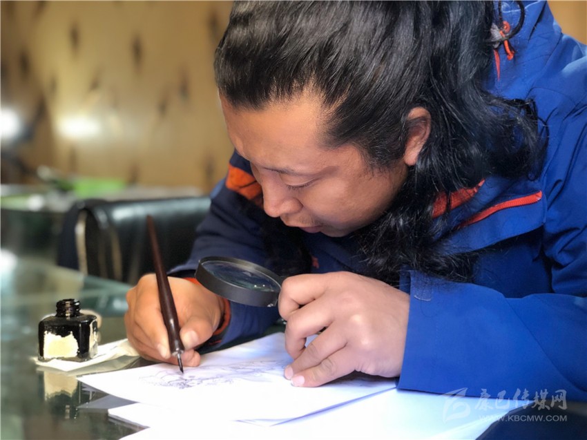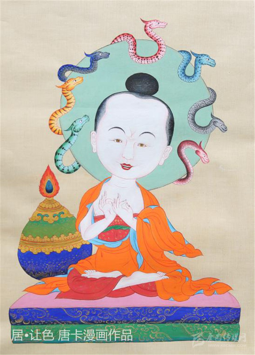 從小熱愛繪畫的他從沒放棄對傳統唐卡繪畫藝術的學習與追求,在多年的繪畫過程中,他不斷嘗試不同的藝術形式和繪畫風格,最后將漫畫與唐卡繪畫相互融合,開創了唐卡漫畫的全新繪畫形式。