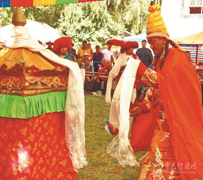 在康巴衛視藏歷春晚節目中,我初次看到巴塘藏戲,原以為是寺廟舞蹈,卻在唱聲里聽出類似川劇的喉腔讓我覺得新奇,于是找些資料看看了巴塘藏戲介紹。藏戲的開山鼻祖唐東杰布。藏民歷來把他看作是創造藏戲的戲神和修建橋梁的鐵木工匠的“祖師”,是藏族人民心目中智慧、力量的化身。他將佛教經典中的傳記同民間傳說、神話故事等內容融在一起,創作出一種具有人物性格和舞蹈、唱腔相結合的表演藝術,使過去那種單一的跳神舞逐漸地戲劇化,表現手段也不斷加強,并從宗教儀式中分離出來,形成了藏劇藝術的雛形。